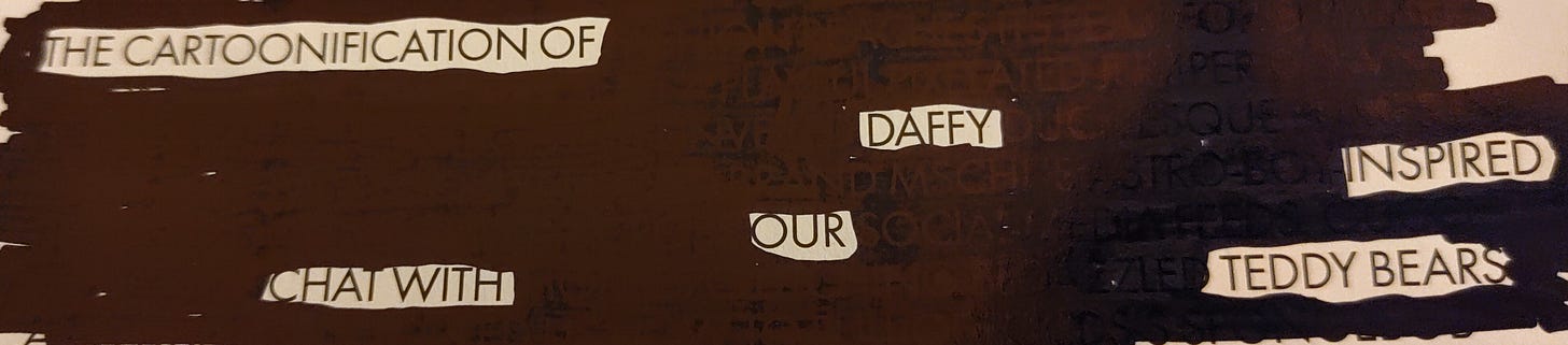 Hidden Messages: Day XXIVThe cartoonification of Daffy inspired our chat with teddy bears.Lydia CrowMar 24, 20243ShareElle, June 2023Subscribe to follow along with Hidden MessagesSubscribePreviousNext